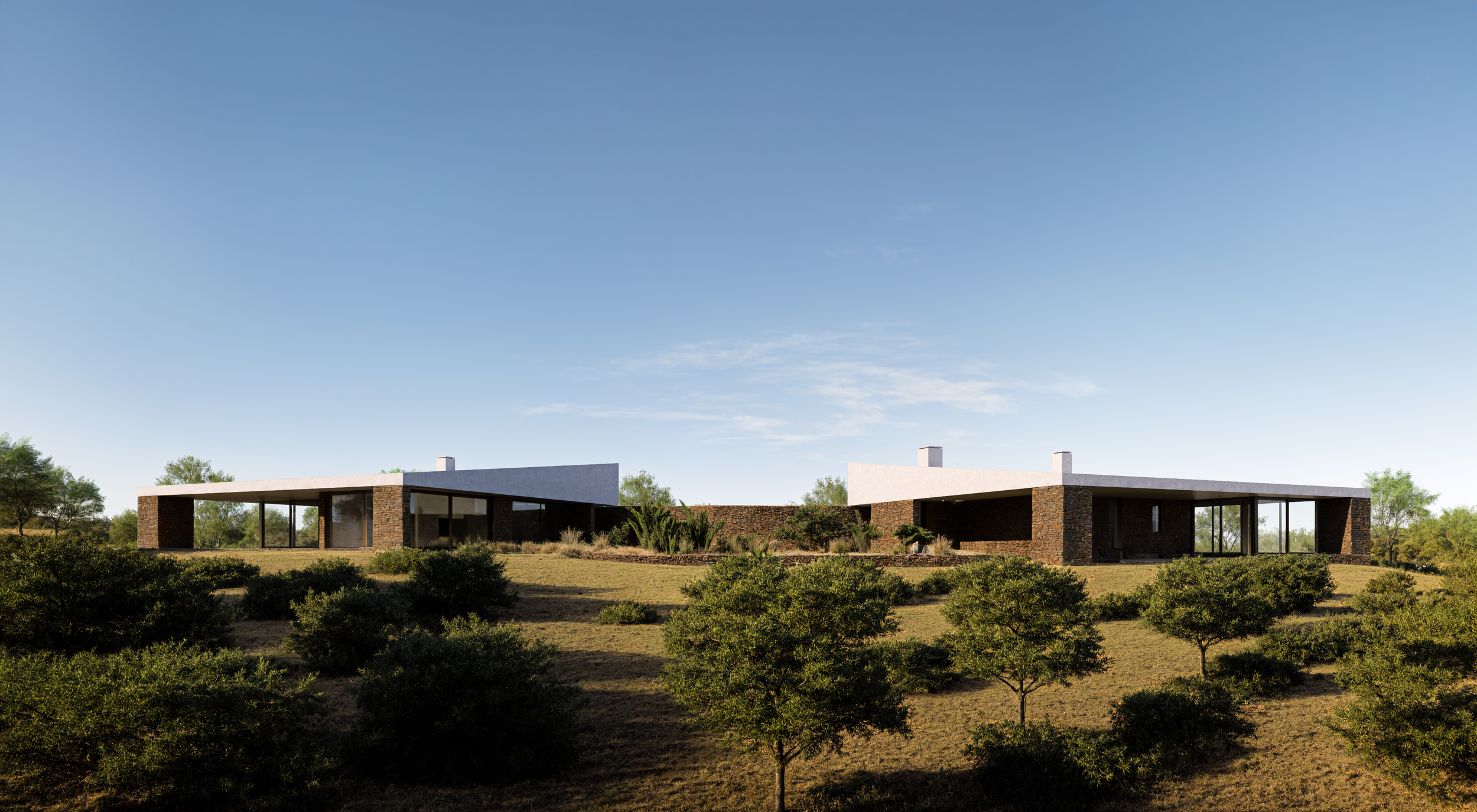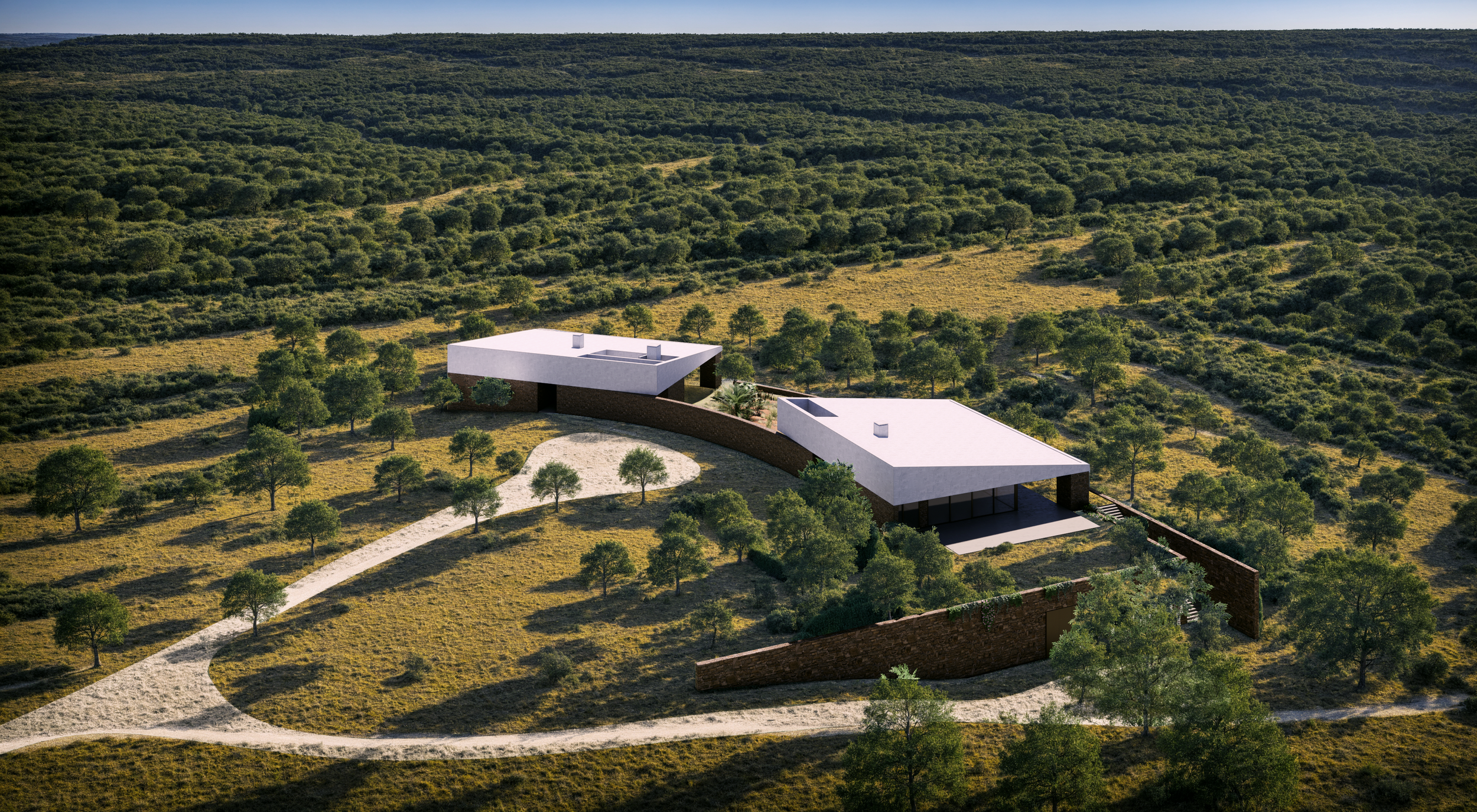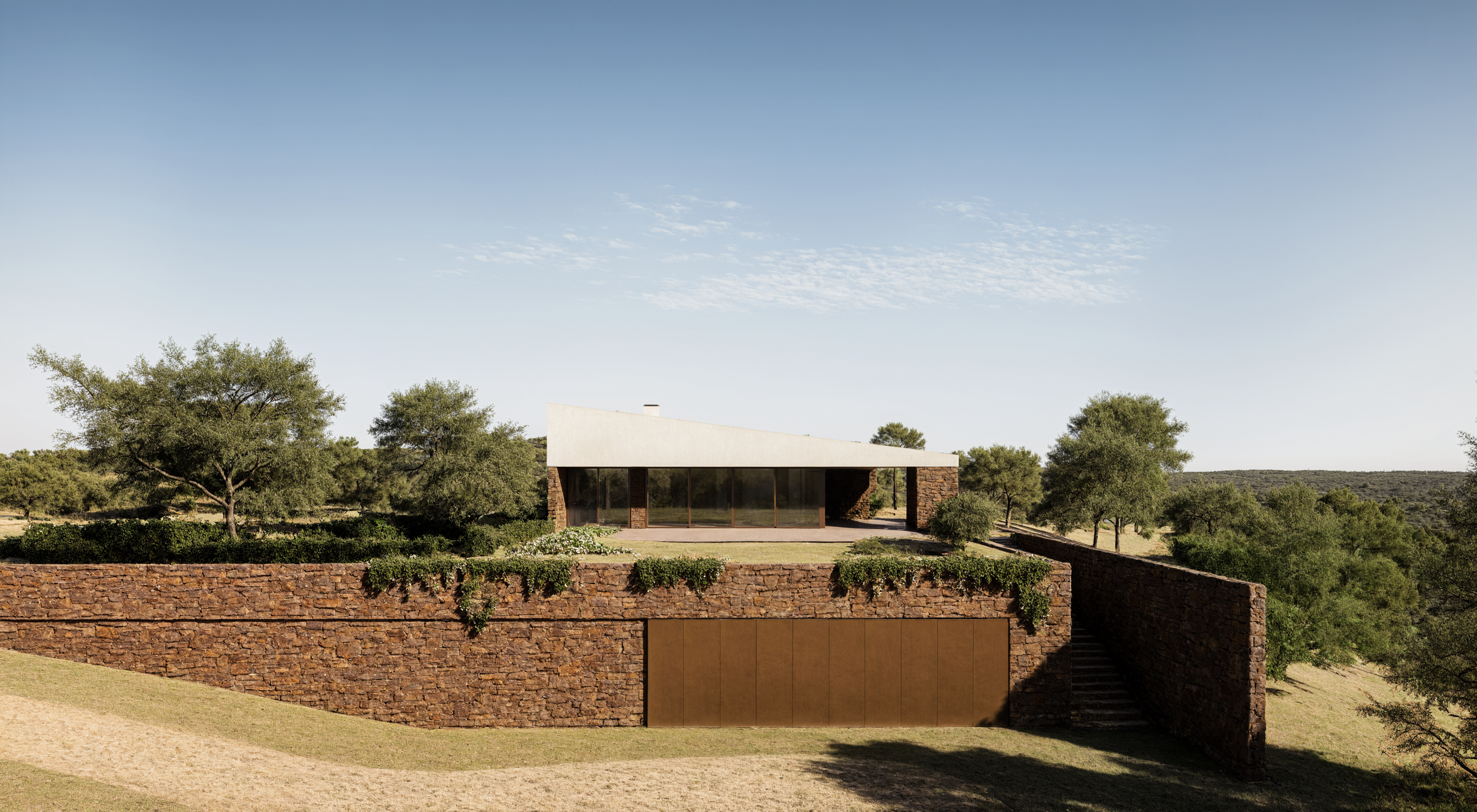 Respeitando a presença e implantação do edifício original, esta ampliação tenta tirar o melhor partido da paisagem onde se insere. Os dois volumes, destinados a habitação, são definidos por um só piso assente no novo volume para armazém agrícola.