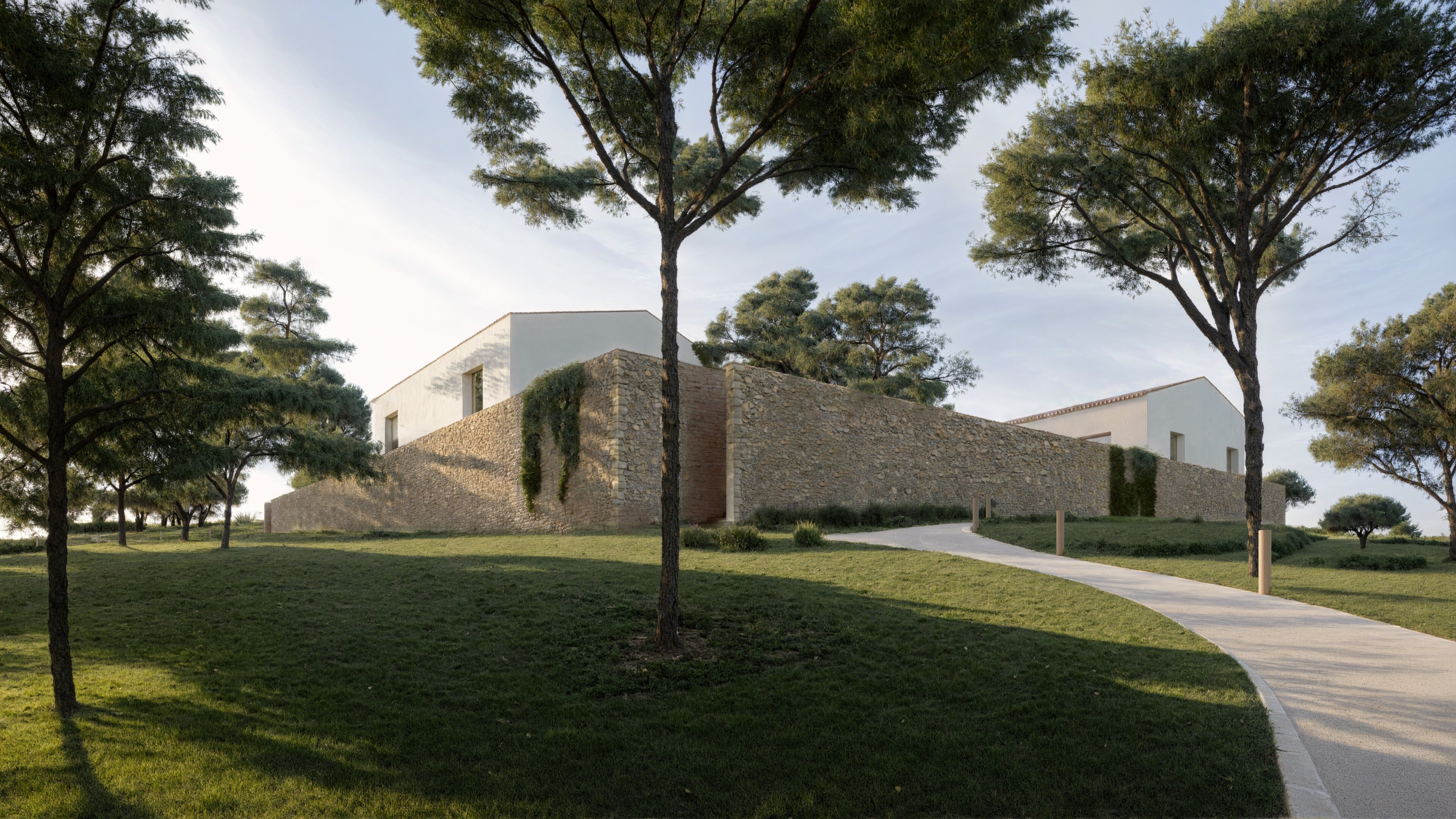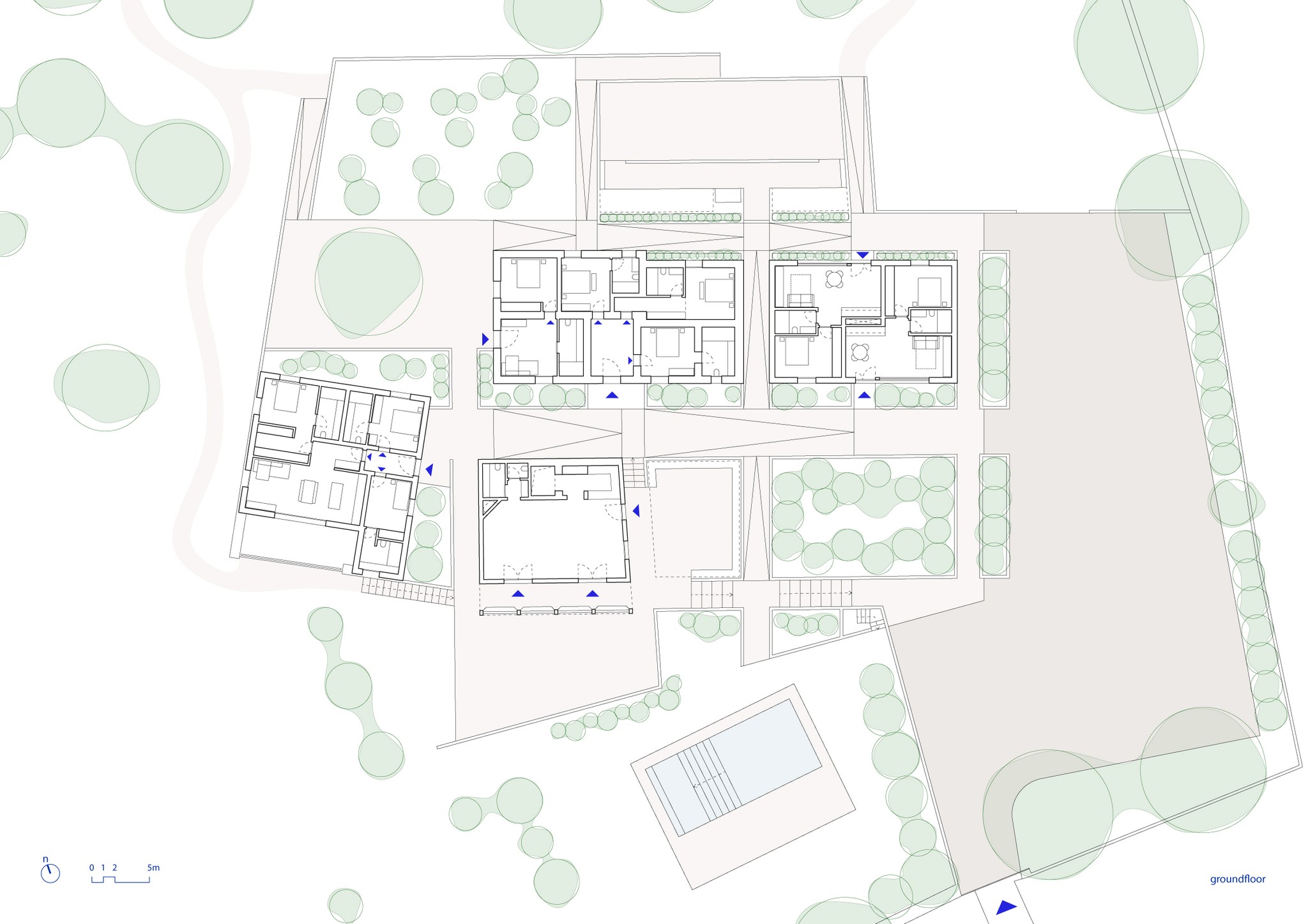 On top of a hill, its location offers amazing west views into the valley, while towards the north side of the plot, an orchard celebrates the local flora.